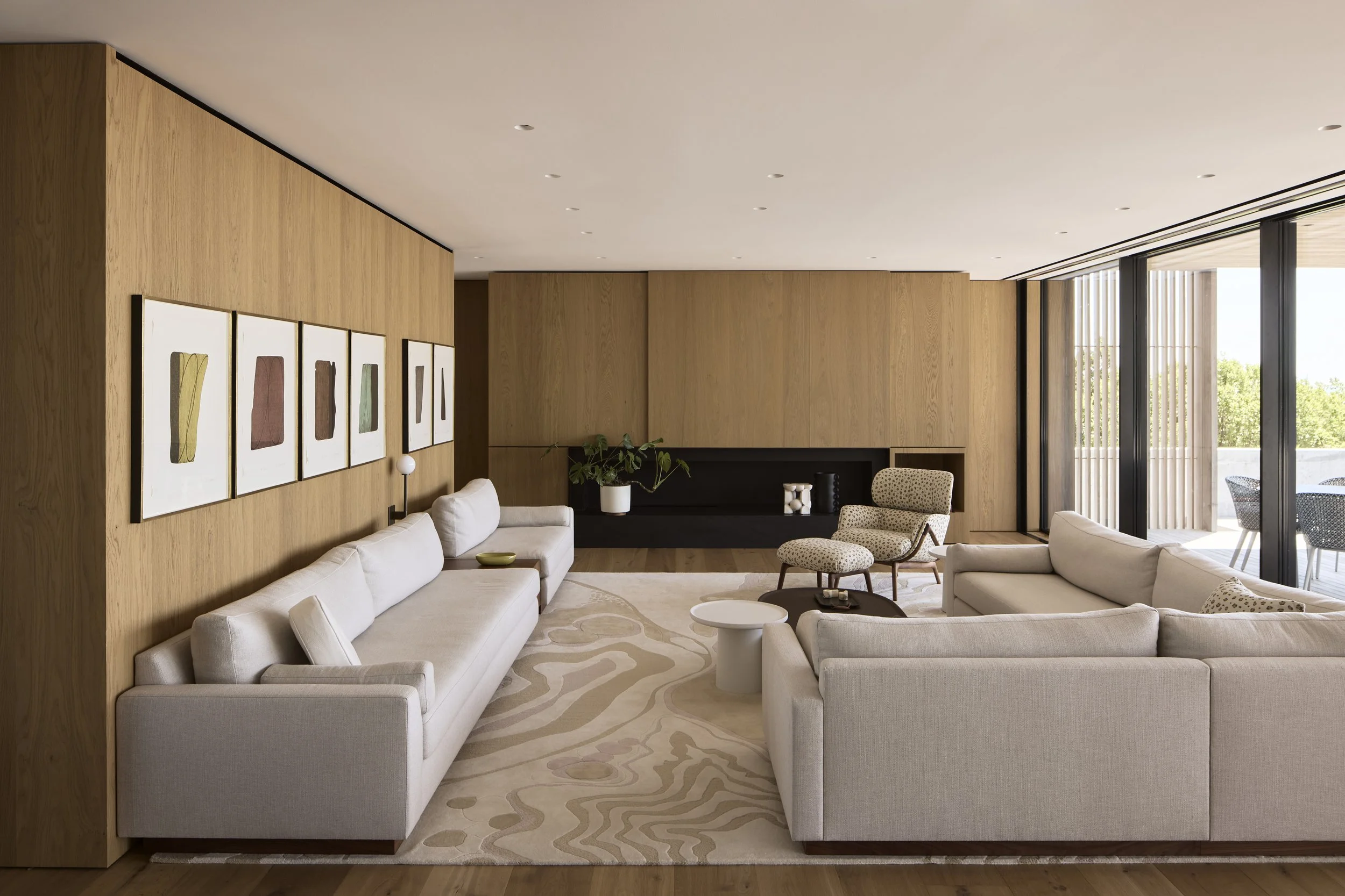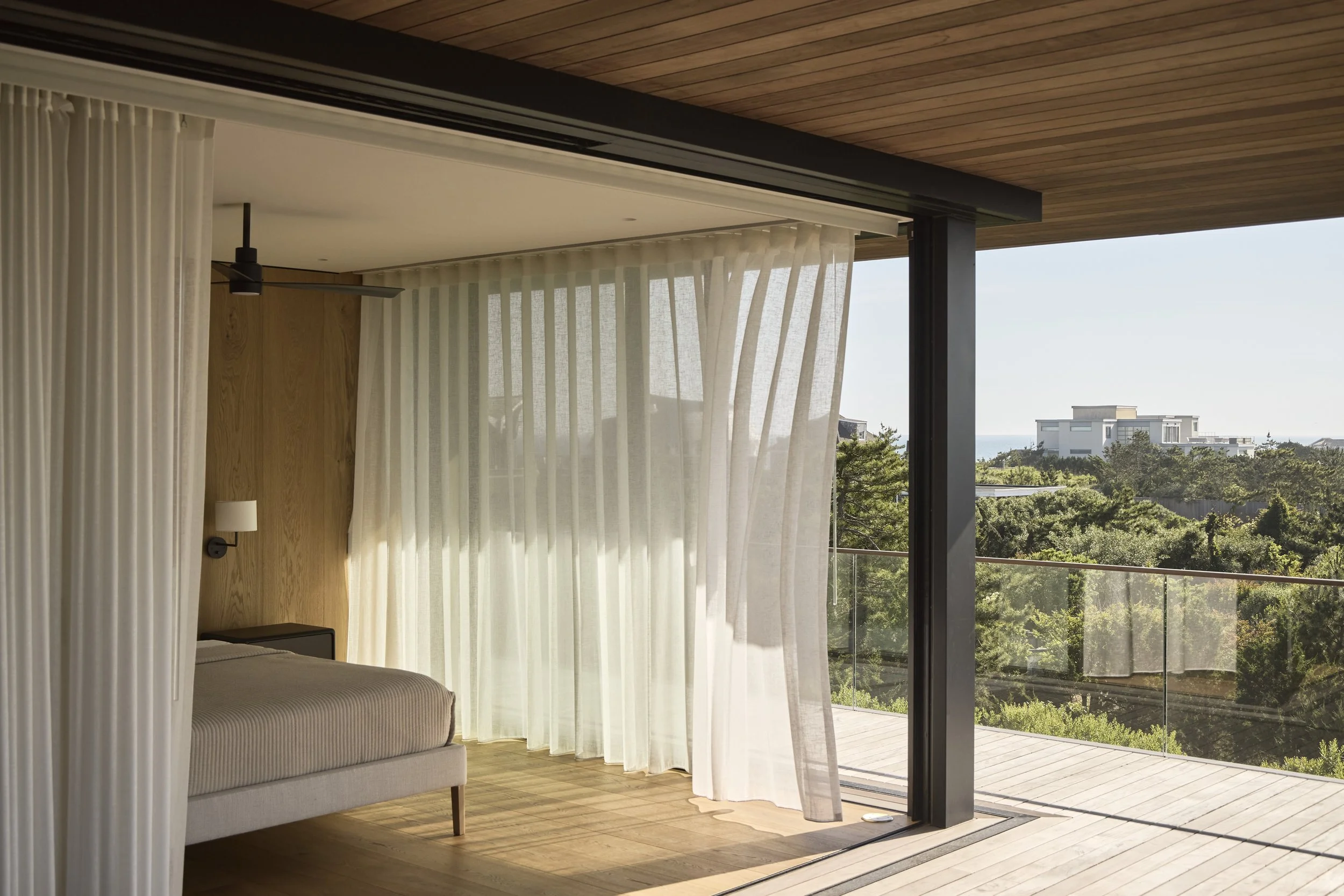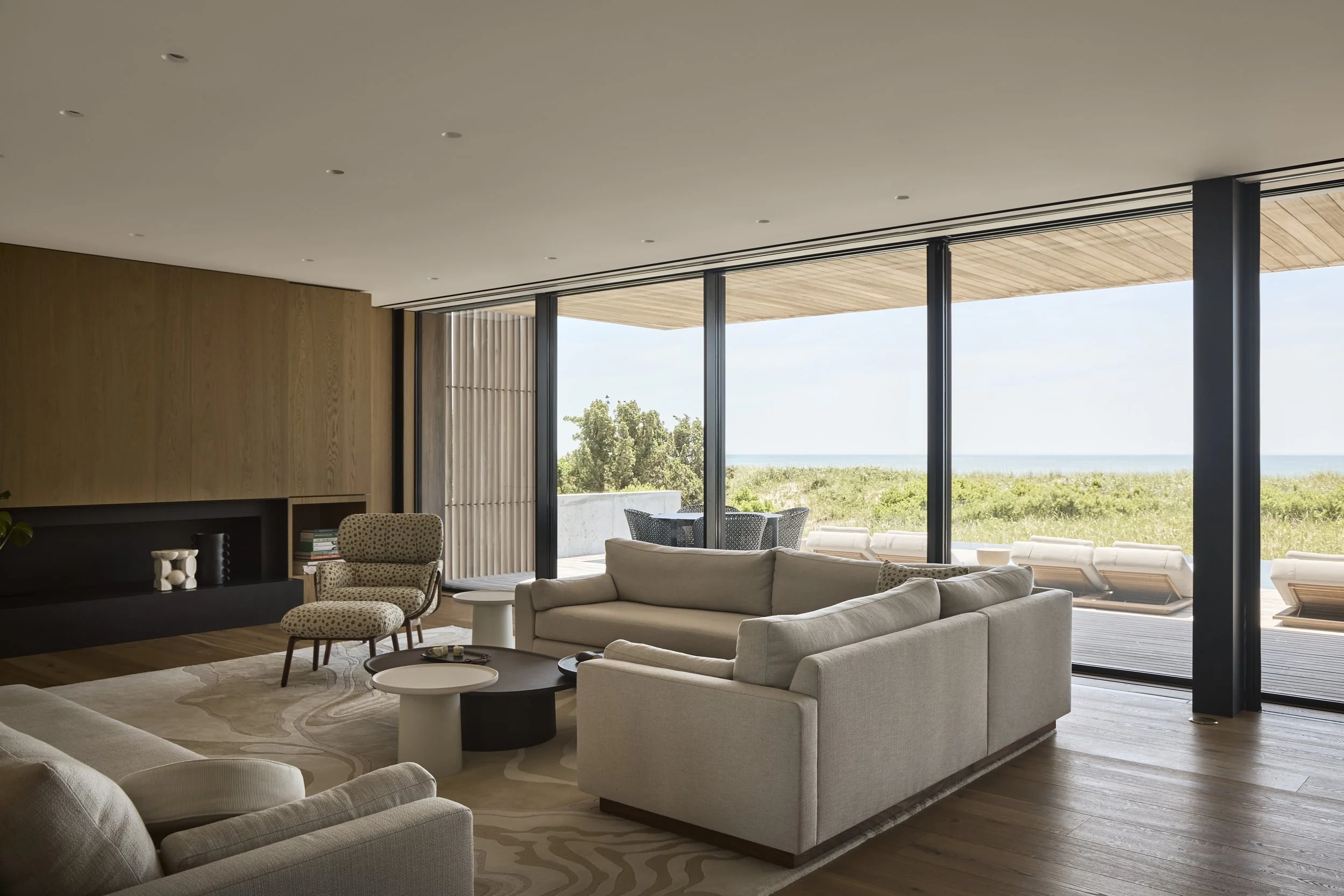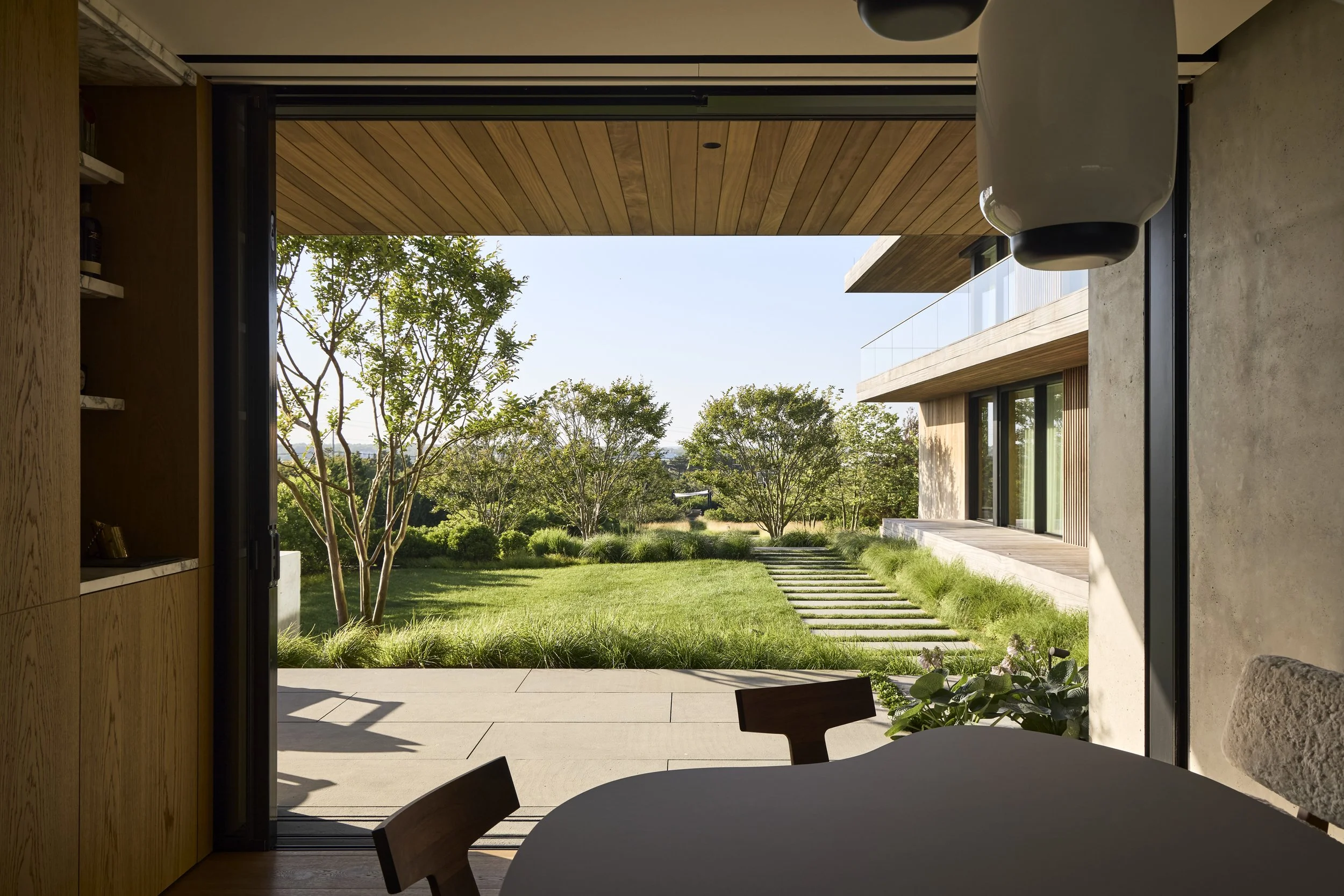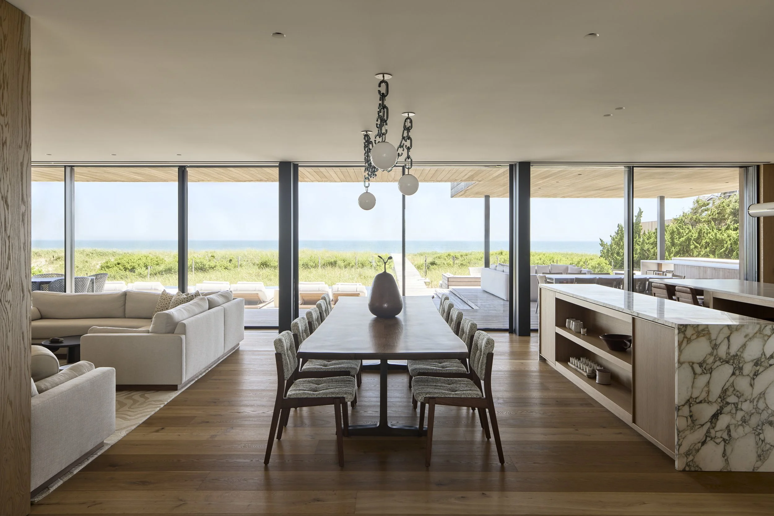 With the interiors clad in oak, a lively palette of color appears as accents in each room. Modest room sizes lend themselves to well proportioned furniture and an overall easy-living appeal. The owners art collection and input on finishes adds a personal touch throughout the house, making for a unique interior space filled with character.